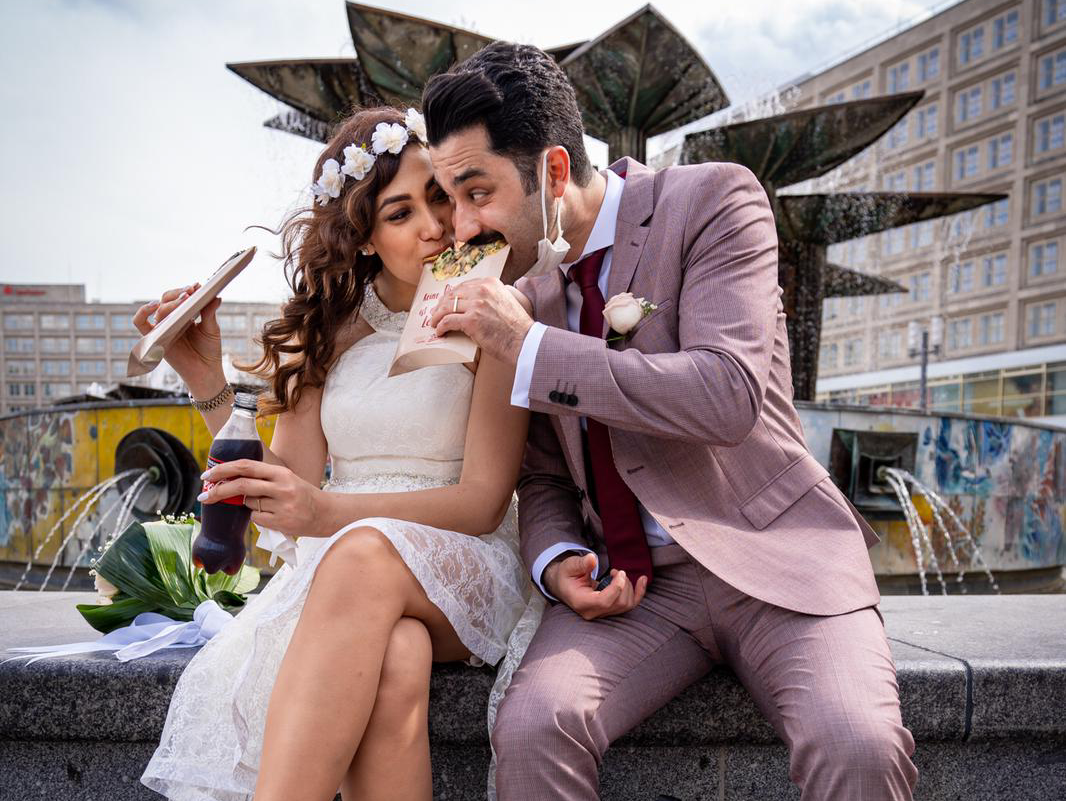Für diesen Auftrag habe ich mir was ganz Besonderes einfallen lassen. Da ich nur die Feier am Ende fotografieren sollte, haben wir dafür ein umso längeres Paarshooting veranstaltet. Mitten in Berlin, an verschiedenen Spots wie der Oberbaumbrücke oder die Hackeschen Höfe.